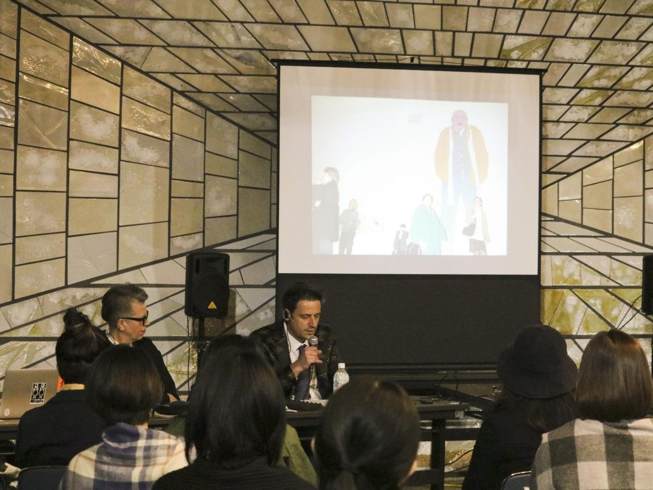 これは、まったく無名の一般市民をまるでスターのように描き作品として発表することをコンセプトにしていましたが、SNSの普及により、一般市民がSNSを通して実際のスターになることができるようになったため、作品に組み込むことの意義が大きく変わってしまったとお話しされていました。そして現在の仕事として、新聞のコラムの挿絵やinstagramで更新を続けているgifアニメションなどが紹介され、技術の進歩に伴い、ドローイングの手法も大きく変わっていることを知ることが出来ました。