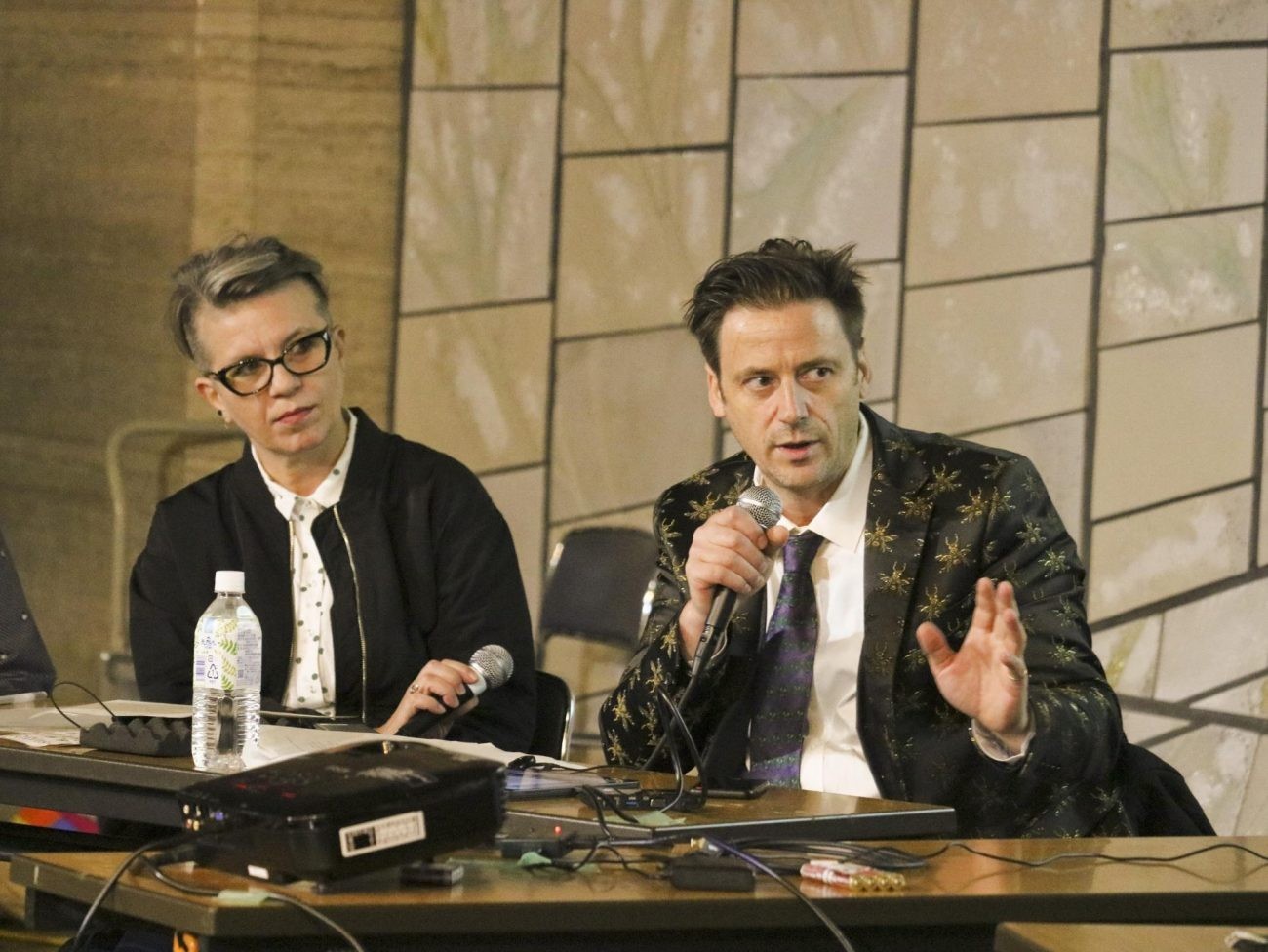 この日は、アーティストと学芸員がコンビになって、これまでのプロジェクトを紹介し、その後4名で色々な話をする流れとなりました。まずは、SIAF2017のモエレ沼公園の参加アーティストだった伊藤隆介さんと、その会場を担当した宮井和美さんコンビのお話です。