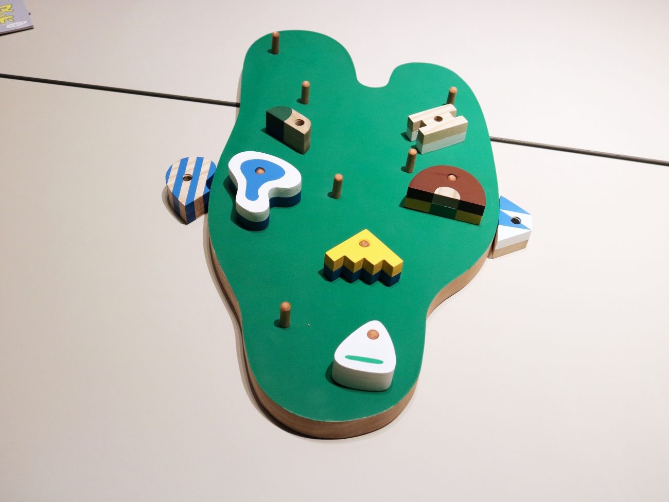 今回のイベント、企画したのはSIAF2020キュレーターのアートメディエーションを担当するマグダレナ・クレイスさん(ポーランド在住)。会場に用意された木製のおもちゃは、複数の突起が付いた3つのボードと、モエレ沼公園に設置されている「ガラスのピラミッド」などの構造物や遊具をイメージしてデザインされ、ボードの突起に差し込むことができる33のブロックで構成された、その名も今回のワークショップと同じ「モエレ・デ・アソボ」。ボードをモエレ沼公園のフィールドに見立て、ブロックを自由に配置すれば自分だけのモエレ沼公園が完成!というもの。イサム・ノグチは宇宙から公園がどのように見えるか、という視点でモエレ沼公園をデザインしたそうなので、これを使って遊べば、あなたもイサム・ノグチになれる!かも?