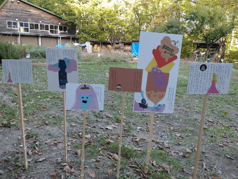 進藤冬華さんの作品は、札幌の地形形成から着想を得た新作で、ゲストに高橋いまちゃん(5歳)を迎え、物語「シコツコひめのびょうきのこと」を創作し、屋外インスタレーションとして展開。