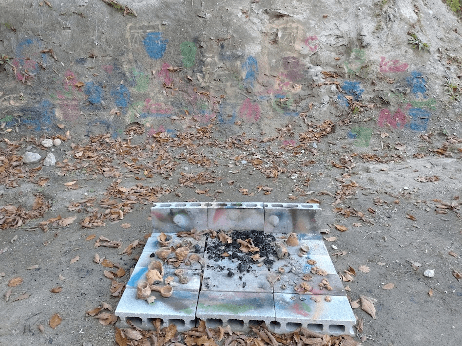 第二次世界大戦中の米軍による艦砲射撃の激しさを今に伝える公益質屋を擦りとったものだそうです。