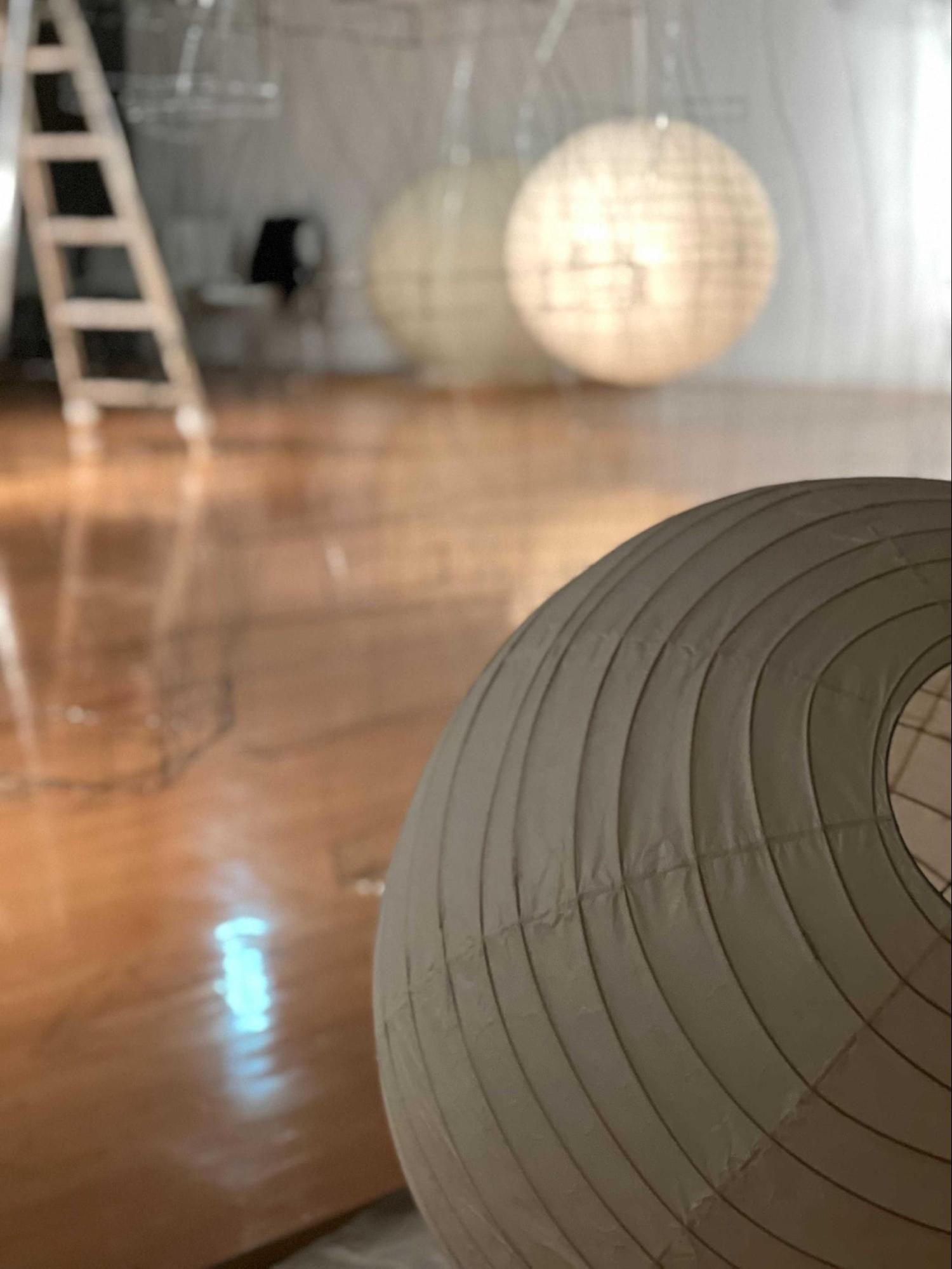 まず目に入ったのはイサム・ノグチの《AKARI》ですが、いくつかの作品はまだ灯る前、地上で眠り寝息を立てながらその時を待っていました。