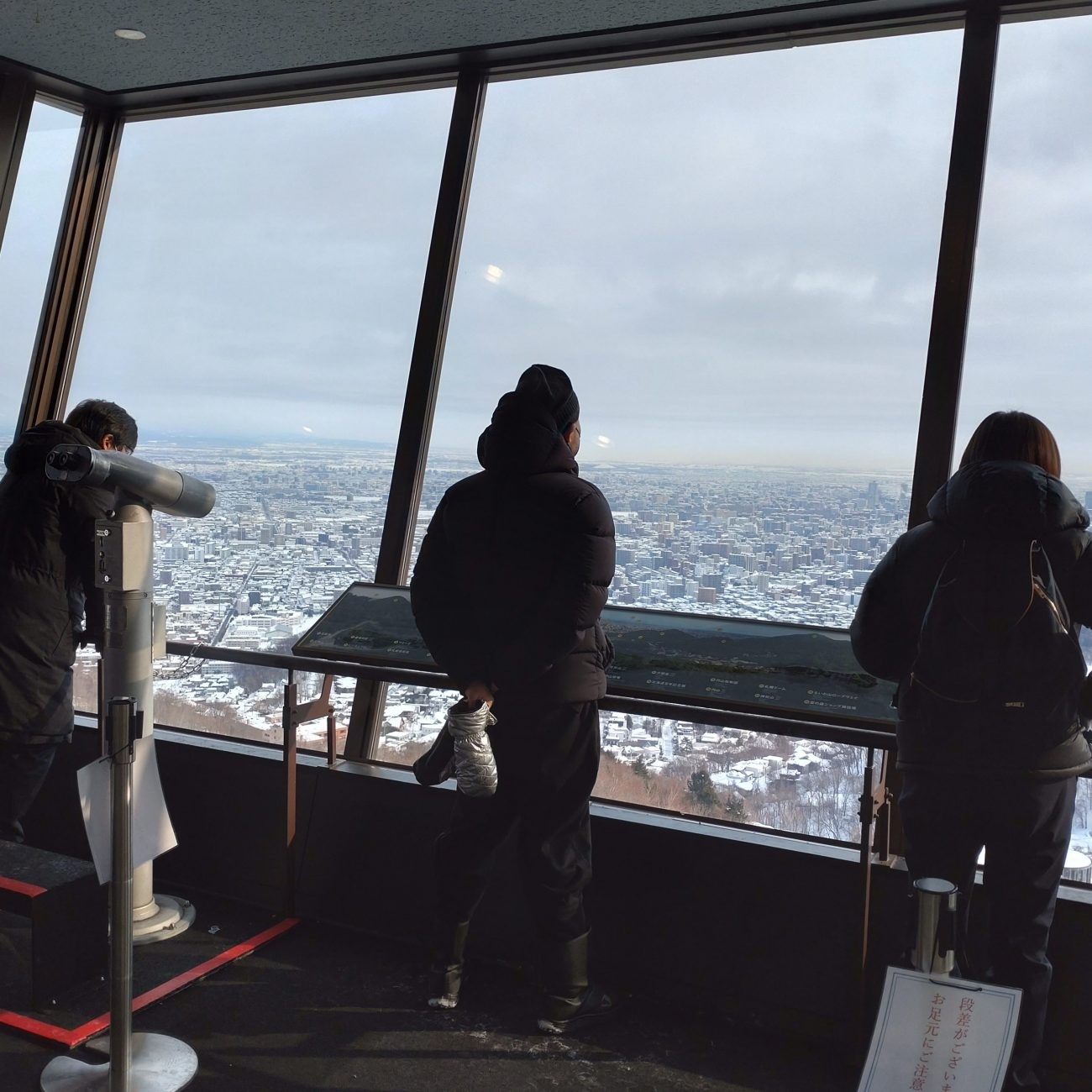 視察最終日は、大倉山から雪に覆われた札幌市内を見渡しながら