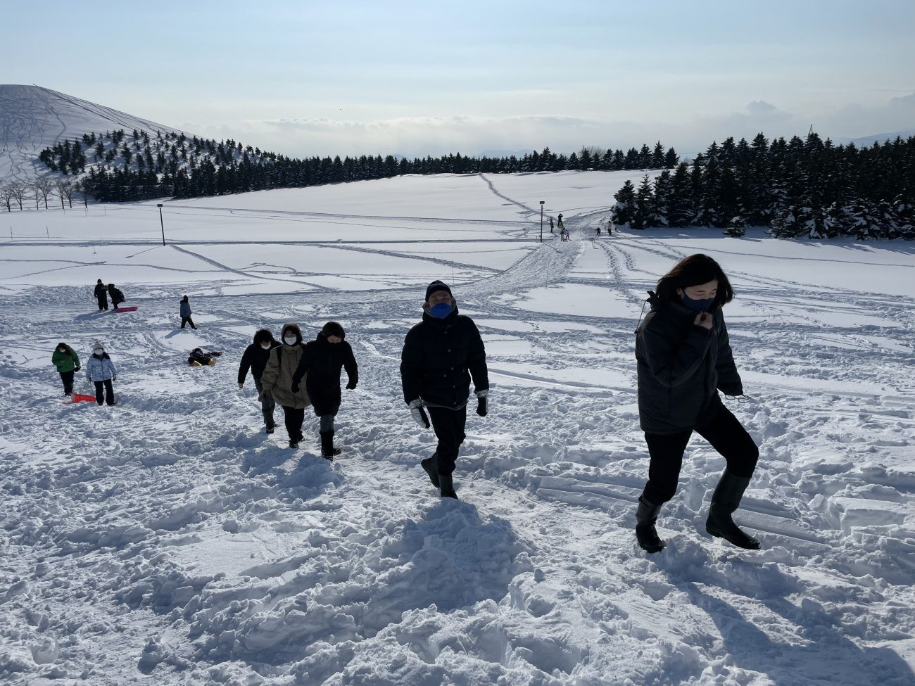 初日は雪がたっぷりの風景の中真駒内方面に向かい、札幌芸術の森へ。