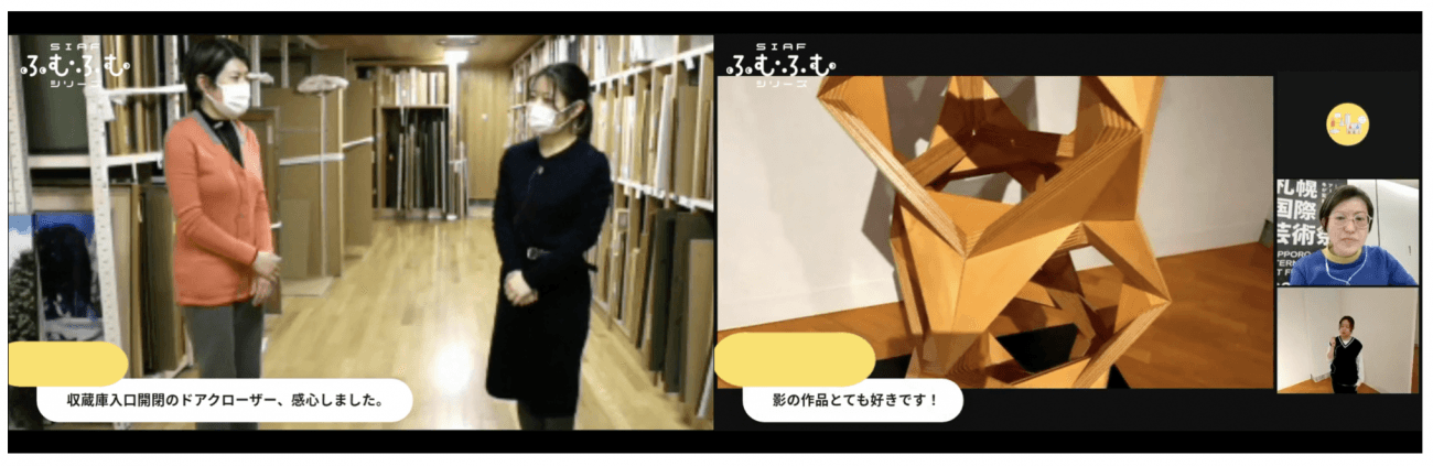 今回、特別に見せていただいた「収蔵庫」では、いろんな管理や保管方法を紹介し、コメントがとても盛り上がりました。作者・作品の背景、画面からどんなふうに見えているのかなどの質問から、参加者の皆さんのさまざまな考えの率直なコメントがリアルタイムに届き、嬉しかったです。