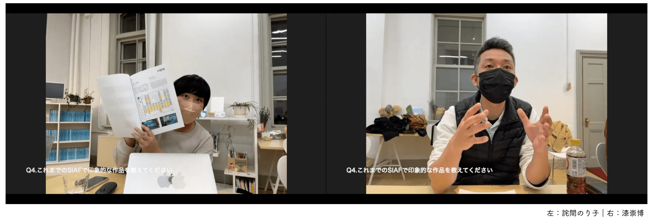 さらに、漆さんは「(小川さんは)ビジョンを強く提示するタイプなので、そこに芸術祭の内容を近づけていけるようにしたい」と今後への思いをお話してくれました。いよいよ来年度に迫る次回のSIAFへ期待が膨らみます…!