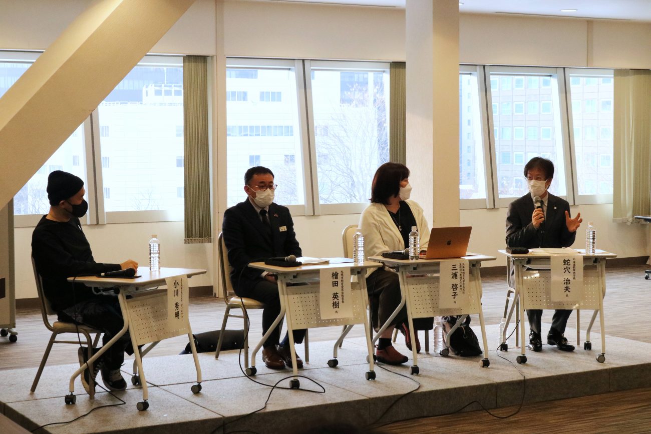 北海道教育大学 蛇穴 治夫学長、北海道教育大学岩見沢校 三浦 啓子准教授(美術文化専攻)、札幌市教育委員会 檜田 英樹教育長、SIAF2024 小川秀明ディレクターによるパネルディスカッションが行われました。