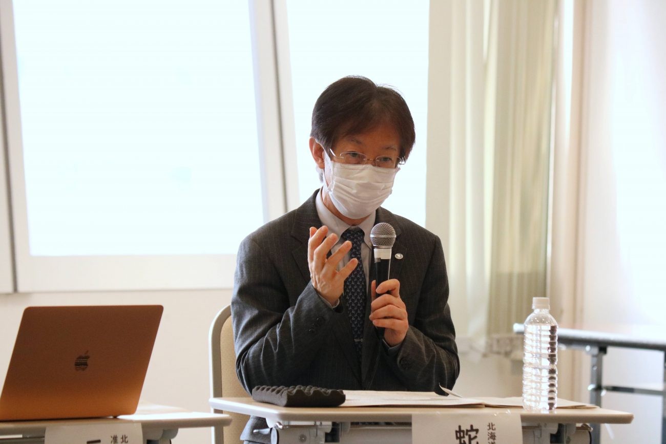 岩見沢駅構内にある北海道教育大学岩見沢校の情報発信スペース「i-BOX」での事例をお話いただきました。そこでは情報発信に留まらず、常駐スタッフの方が、住民と大学をつなぐ橋渡し役として、地域に根差して活動されているとのことです。「これから始まるSIAFスクールが、まさに地域に根差した橋渡し役の発展形になり得ると思うので、期待している。」との言葉をいただきました。