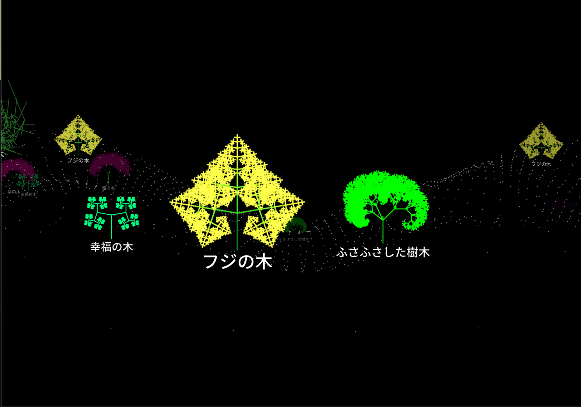 今年度の出前授業では、暮らしの中にある身近な存在の知見を広げ、新しい気づきや発見を得る、ということをねらいとし、アートユニット・フジ森が「植物」「木」をモチーフに開発したテキストプログラミングのウェブアプリケーションで「自分だけの木の図形」を制作するワークショップを実施します。