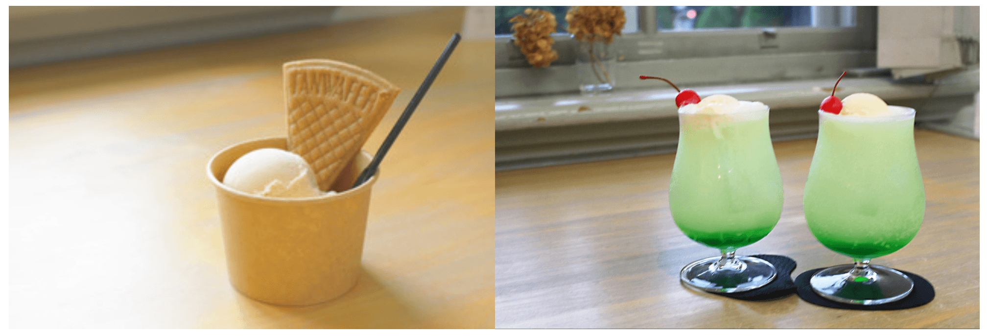 ※左:アイスクリーム提供イメージ/右:メロンクリームソーダ提供イメージ