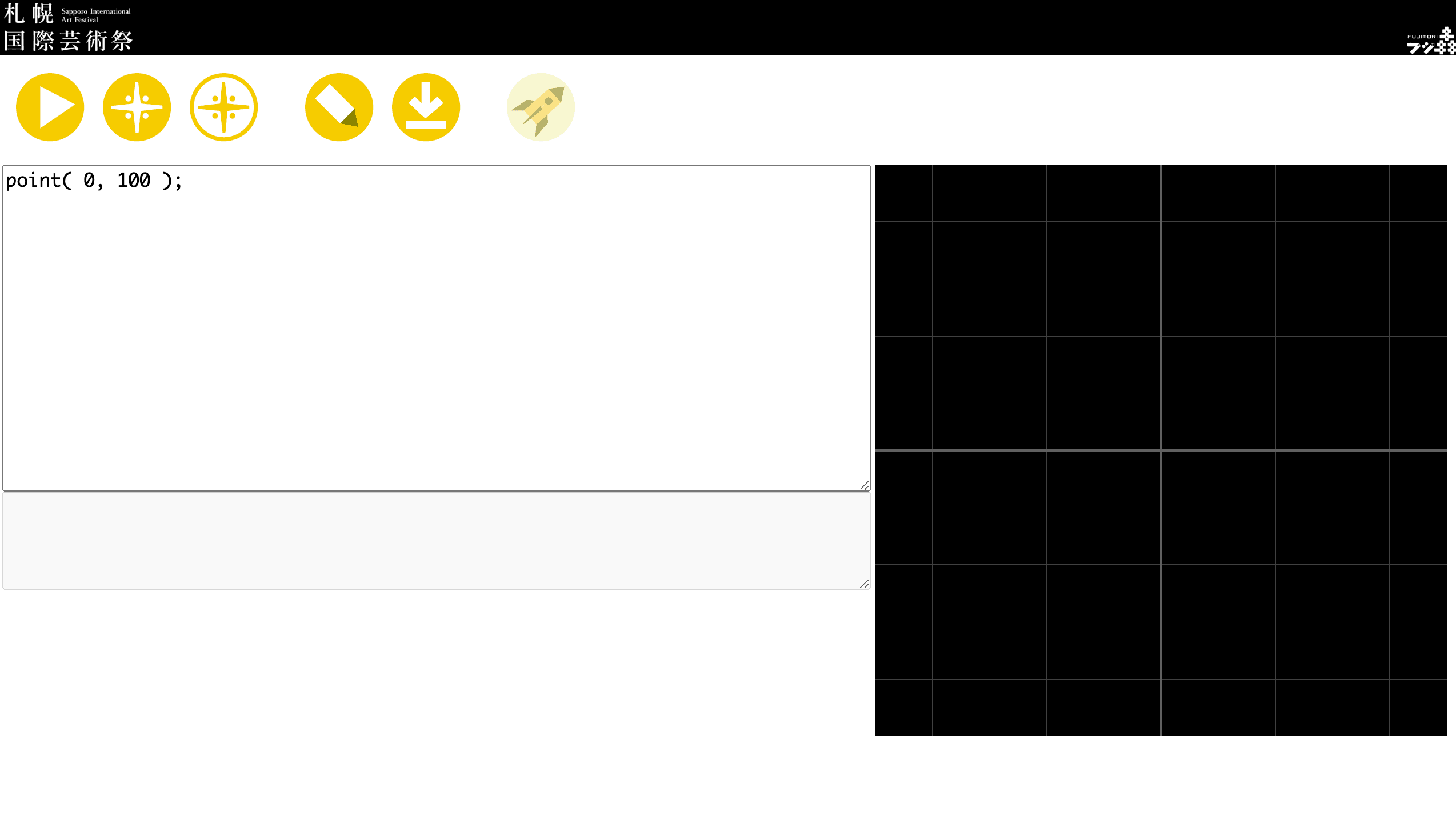 画面の左側に文字を打ち込み、上部ボタンをクリックすると右側の黒い画面に反映される仕組みとなっています。今回は点や線、色、そして瞬き方のコードを駆使し、思い思いの星をつくっていきます。