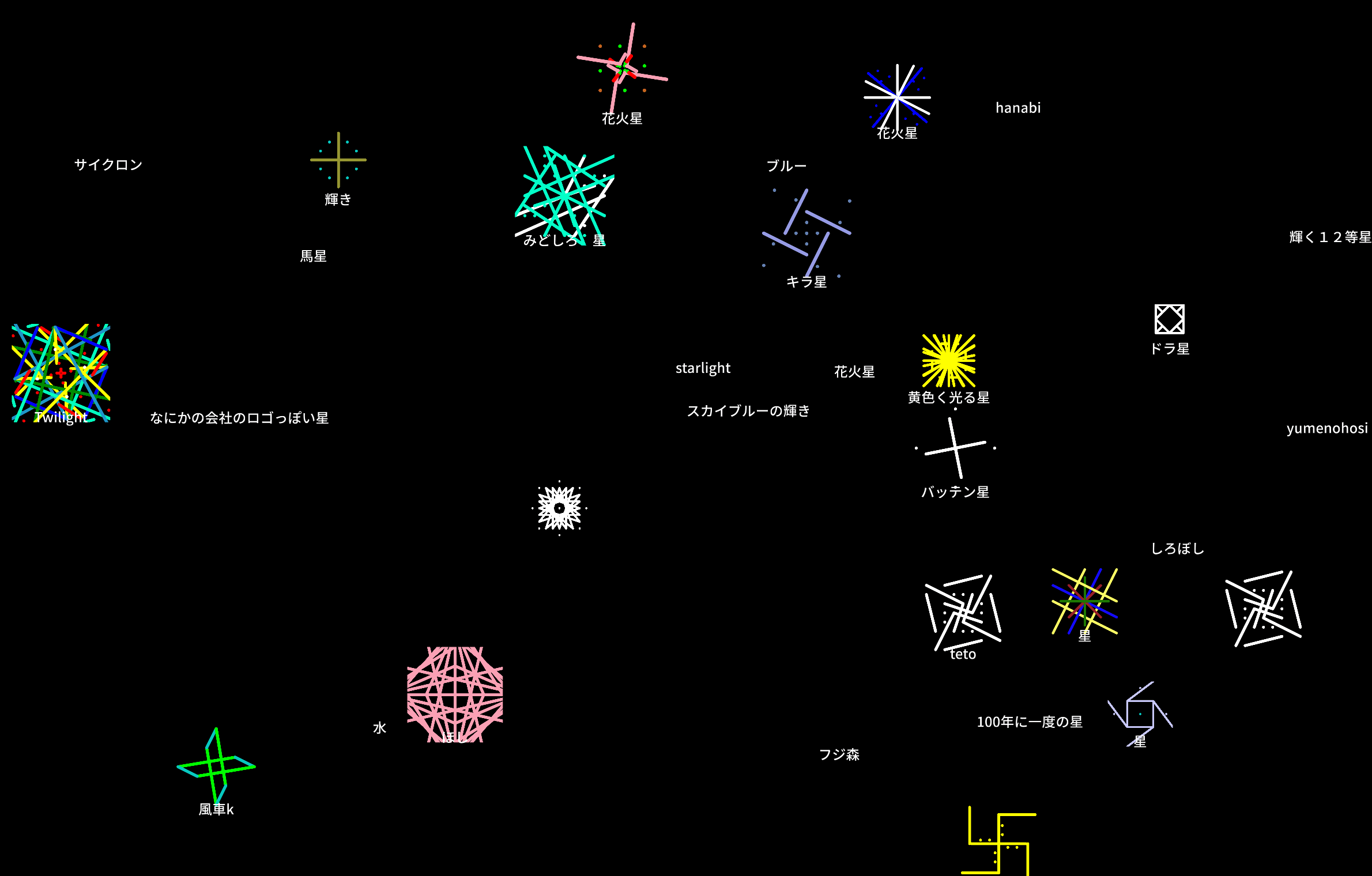 画面上ではゆっくりと点滅したり、チカチカと素早く点滅したり、右から左に流れていく星があるなど、世界で一つの夜空が現れました。