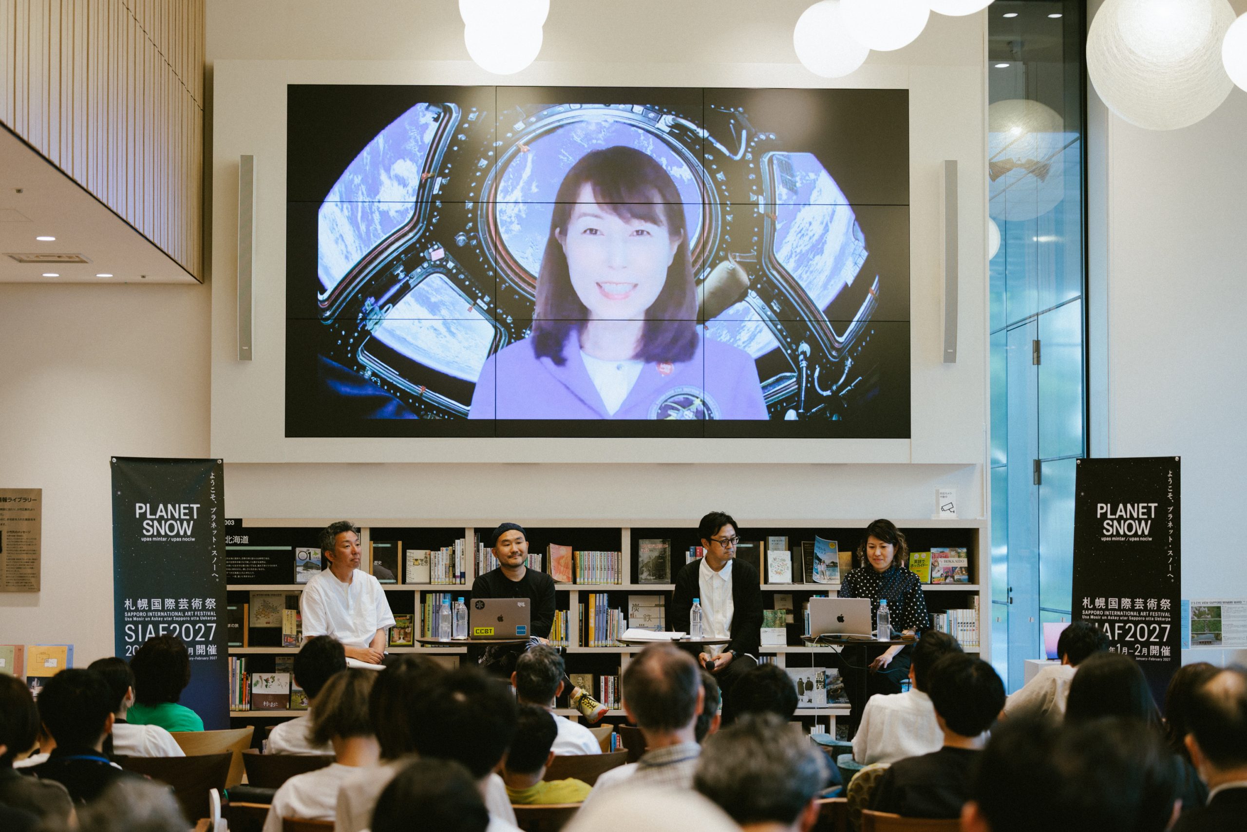 そして サイアフ2027では新たにアドバイザーのポジションを設け 宇宙飛行士であり札幌市青少年科学館名誉館長の山崎直子さんを選任しました 山崎さんの宇宙飛行士としての経験や宇宙科学の知見が テーマPLANET SNOWとコラボレーションし サイアフ2027の企画につながっていきます 当日はなんと ご本人がサプライズで登場とはなりませんでしたが 山崎さんからのメッセージ動画が放映され 会場の期待感が一層高まりましたそして、SIAF2027では新たに「アドバイザー」のポジションを設け、宇宙飛行士であり札幌市青少年科学館名誉館長の山崎直子さんを選任しました。山崎さんの宇宙飛行士としての経験や宇宙科学の知見が、テーマ「PLANET SNOW」とコラボレーションし、SIAF2027の企画につながっていきます。当日はなんと、ご本人がサプライズで登場!…とはなりませんでしたが、山崎さんからのメッセージ動画が放映され、会場の期待感が一層高まりました。