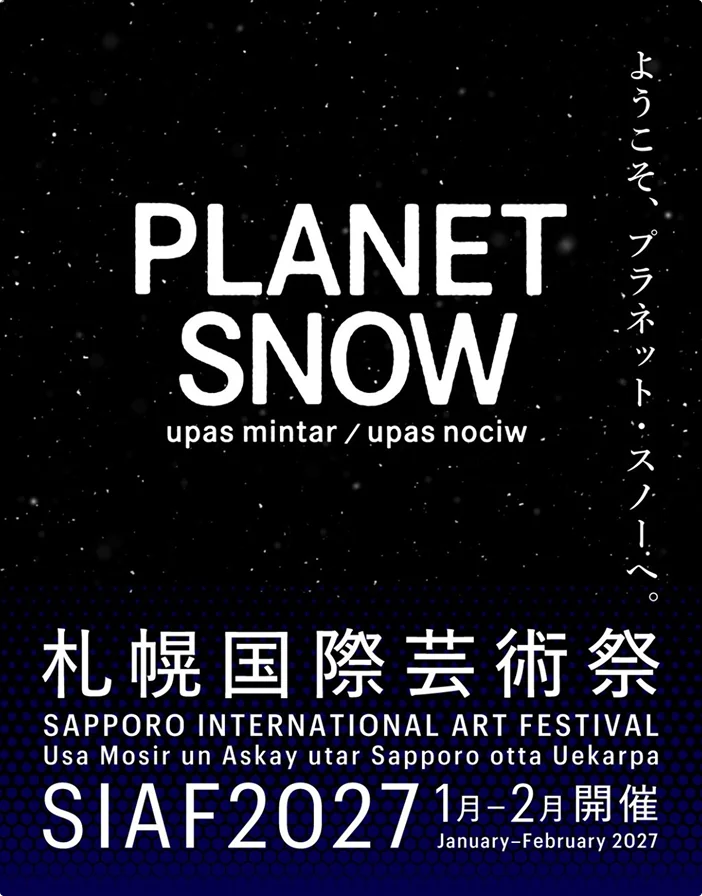 今回のテーマはアイヌ語でも表記されており ウパシは雪 ミンタラは庭 ノチウは星を意味します イベント開催日にニュージーランドに滞在していた アイヌ文化コーディネーターのマユンキキさんからは ニュージーランドのマオリ語のように 全てのものに日本語とアイヌ語が併記されるまでには時間がかかりますが サイアフの姿勢がその一助となることを期待していますとメッセージが寄せられましたSIAF2027では札幌をひとつの星「PLANET SNOW」に見立てます。惑星という大きな観点から、人類とは何か、地球とは何か、宇宙とは何か、という壮大な物語を展開していきます。