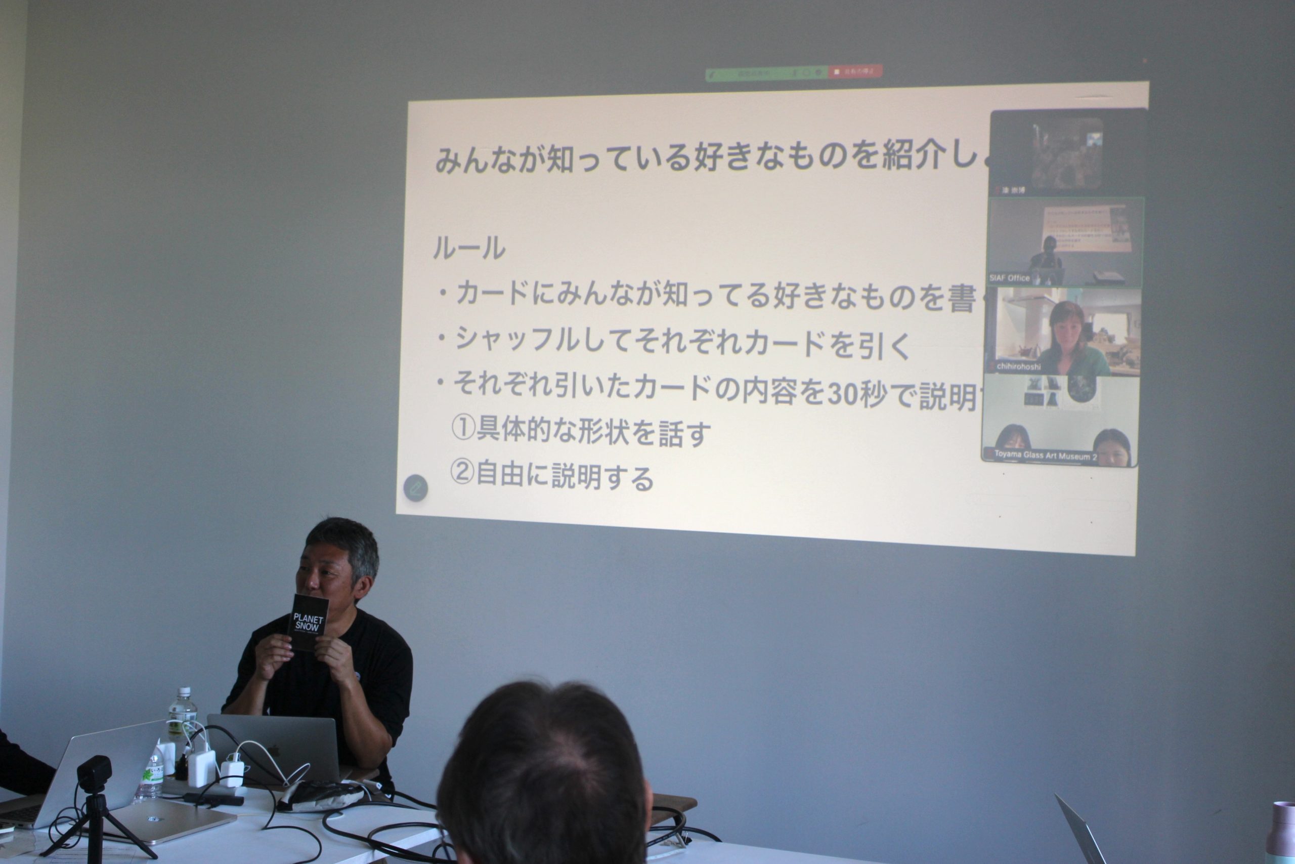 参加者は3名ずつのグループに分かれ ゲームの開始です 最初のテーマは みんなが知っている好きなものを紹介しようです