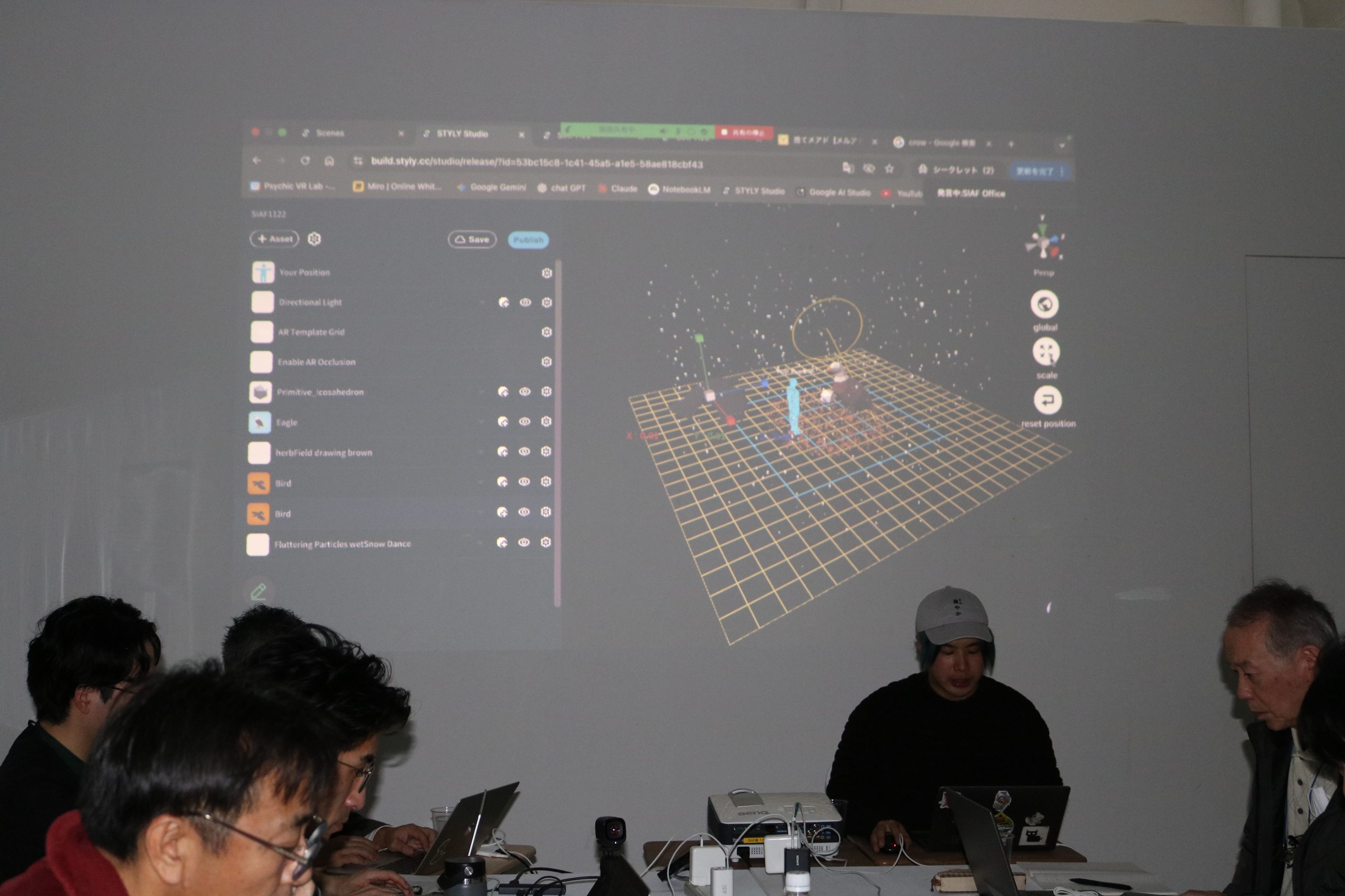 参加者はXRプラットフォームSTYLYを使い 現実世界に生成画像を重ね合わせるAR作品制作を体験しました