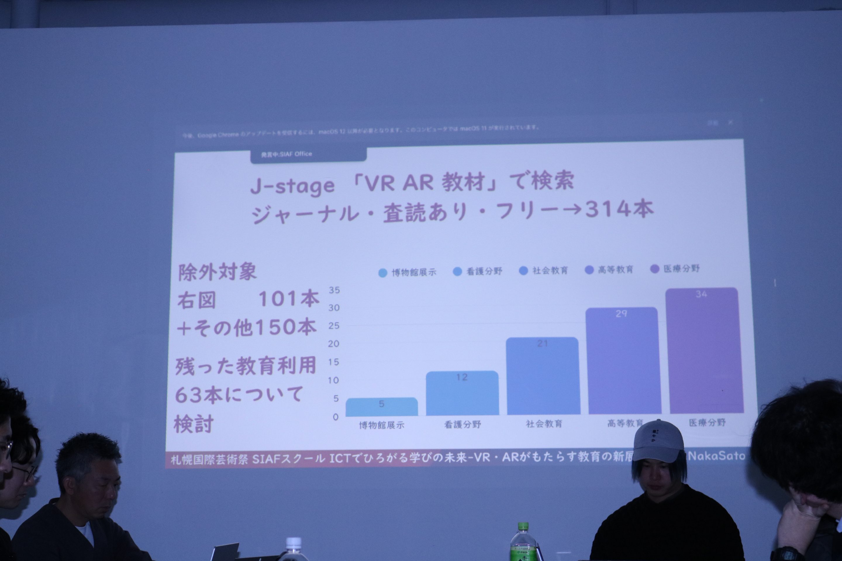 続いて中里さんより 教育現場におけるICT活用の現状についてお話いただきました ぶいあーるえーあーるの活用は依然として医療分野が中心である一方 一般の授業ではまだ多くはないものの 中学校での活用例 具体的には修学旅行の下見などの事例が増えていることが紹介されました