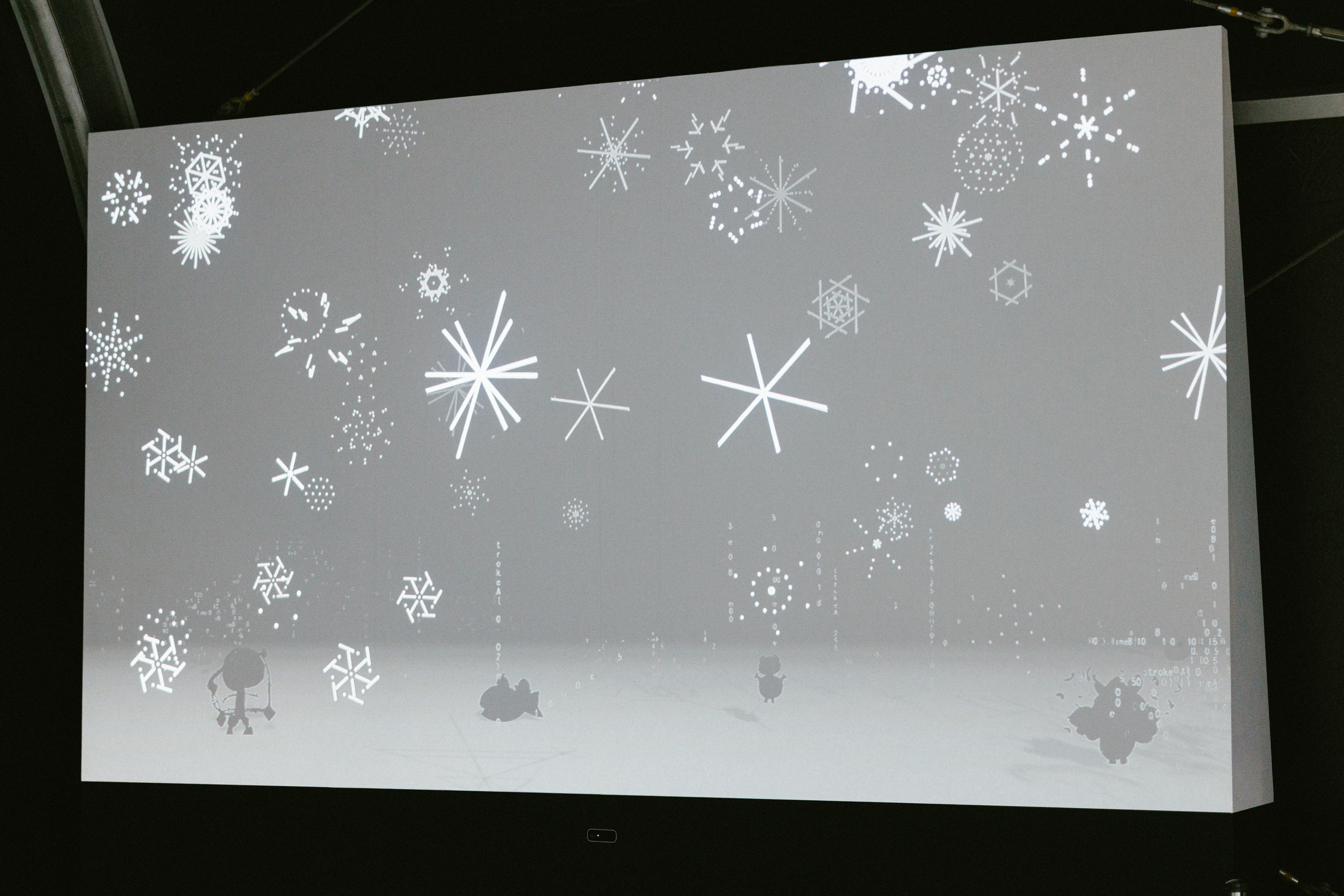 本作は 令和7年度の出前授業で生まれた小中学生による成果を フジ森がひとつの作品としてまとめたものです プログラミングを使って作られた雪 木 星や タブレットを活用して生み出されたモンスターが画面に登場します そこに映し出される内容は1度きりのもので 作品は変化し続けます また 作品を見るみなさんの動きに合わせて 作品内のスポットライトが動くインタラクションも起こります 合わせてお楽しみください イニシアティブパートナー株式会社ワコム 協力北海道大学 名誉教授 吉川義純 / 札幌市博物館活動センター