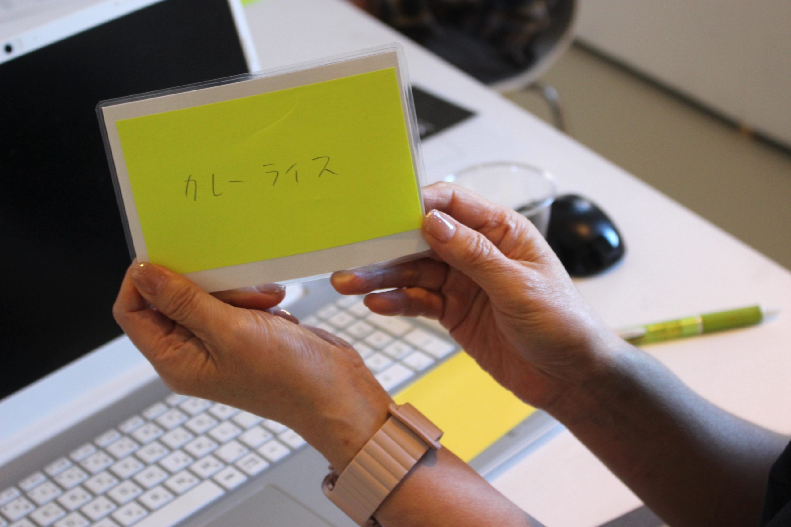 カードを引いた後は、書かれているものについて説明します。よく知っているものでも、いざ説明するとなると案外難しいようで、参加者の皆さんは真剣に取り組んでいました。