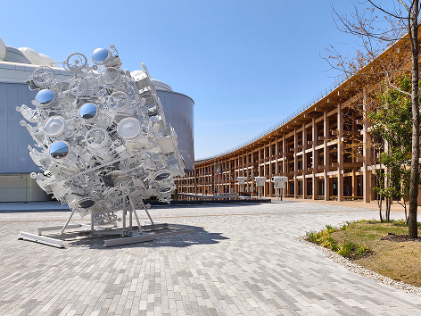 サイアフ2027参加アーティストの檜皮一彦が手がける 70台を超える車いすを素材として使用した大型作品を展示します 本作は大阪関西万博会場内で展示され話題を呼びました