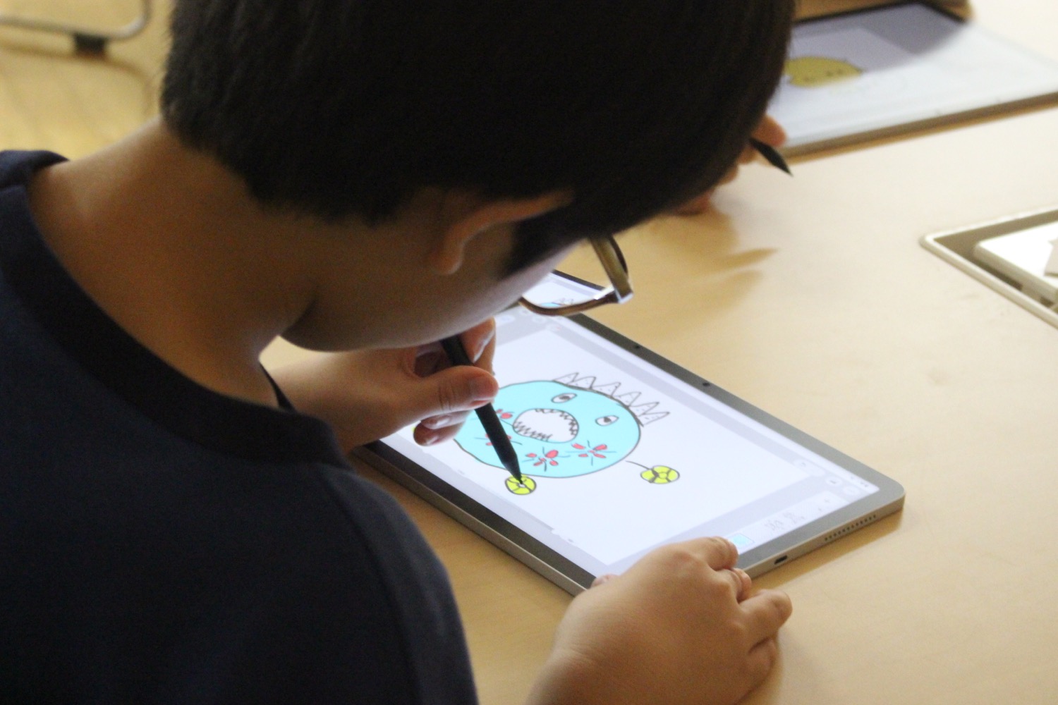 SIAFスクール出前授業「自分だけの新しいモンスターを作ってみよう〜ワコム流アイデアワーク〜」の様子