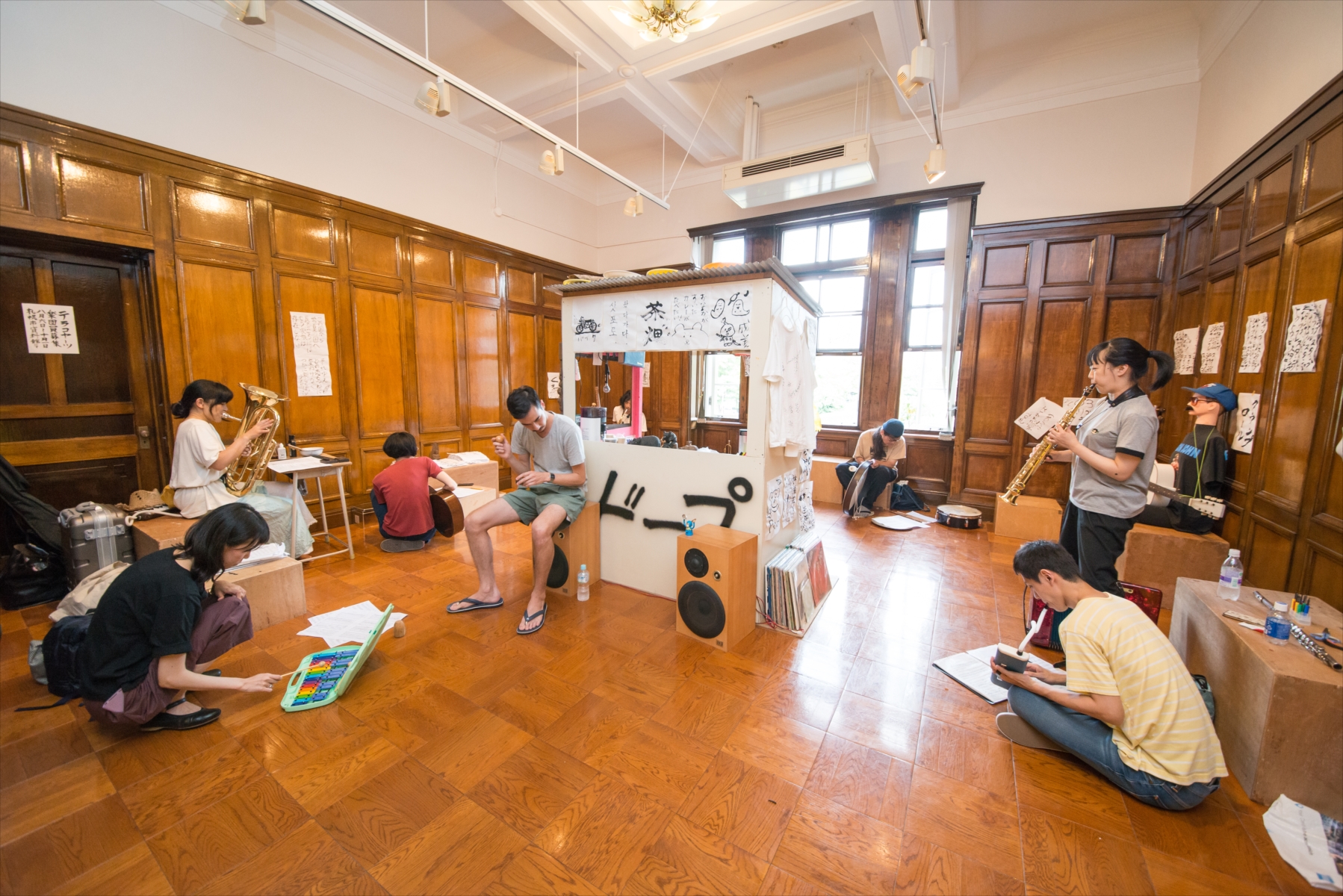 テラコヤーツセンター「土砂」2017|芸術祭が開催された57日間、札幌市資料館の2階にある旧応接室に、テニスコーツのさや、植野隆司とMC MANGOが滞在し、来場者を巻き込んで様々なプログラムを展開した Photo: Yoshisato Komaki