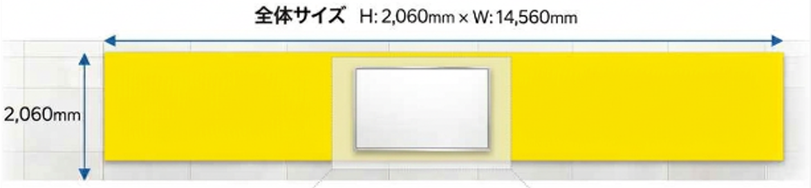 - タテ1,800mm ヨコ2,400mm 期間a,bのいずれか 全体サイズ タテ2,060mmヨコ14,560mm